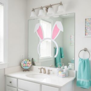 Create removable bunny ears for your bathroom mirror using cardstock, foam board, or felt.