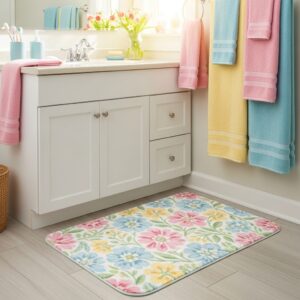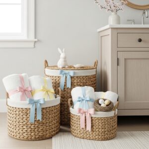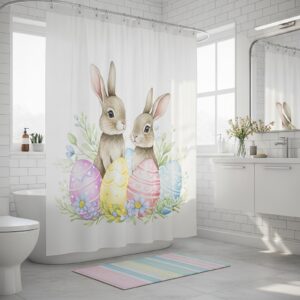 Coordinating it with towels and shower curtains helps tie the entire Easter look together seamlessly.