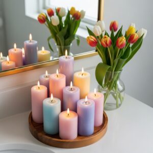 Group two or three candles together at different heights for a cozy, spa-like Easter vibe.