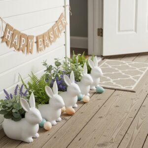 Using bunny containers as planters is a charming way to blend décor and function.