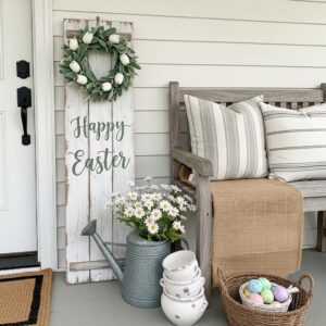 Wooden signs with Easter messages bring warmth and charm to your front porch.