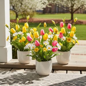 3. Faux Tulip and Daisy Pots