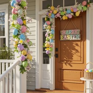 An Easter egg garland instantly transforms a plain porch into a festive display.