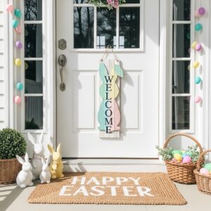 A bunny-themed welcome sign instantly sets the tone for Easter, and Dollar Tree versions are surprisingly charming.