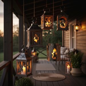 Lanterns decorated with bunny silhouettes bring soft light and charm to your porch.