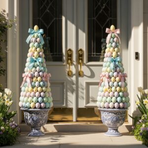 By combining wreaths, flowers, bunnies, and lighted accents, you can create an entrance that’s festive, welcoming, and perfect for family memories.