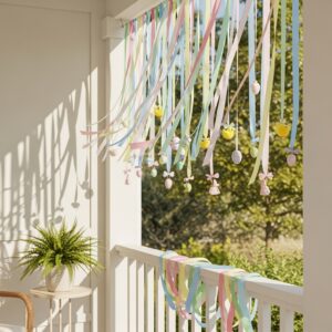 Add small Easter ornaments or eggs at the ends for a soft, whimsical effect that moves gently in the breeze.