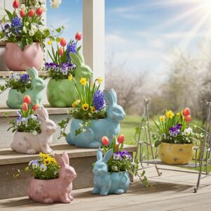 Products/Tools: Ceramic or resin bunny planters, potting soil, small flowers, gardening trowel.