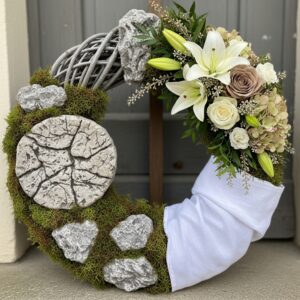 This creative wreath symbolizes the empty tomb of Christ.