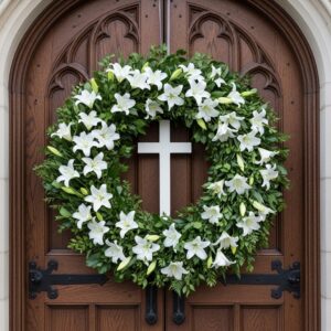 12. Cross and Lily Church Door Wreath
