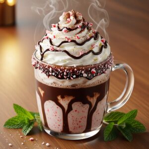 Warm, creamy hot chocolate infused with peppermint—perfect for cozy nights in.