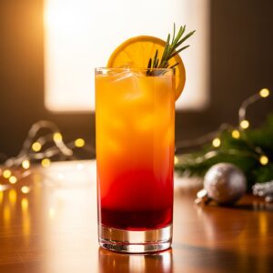 A beautiful layered drink with bright orange and red hues that mimic a winter sunrise.