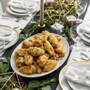 Crispy wings coated in a buttery garlic parmesan sauce — great for finger food lovers.
