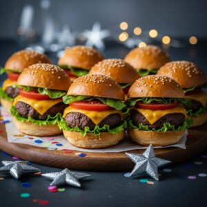 Small, juicy burgers perfect for party guests to grab and enjoy.