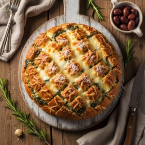 A soft bread stuffed with creamy spinach artichoke filling — simple but elegant.