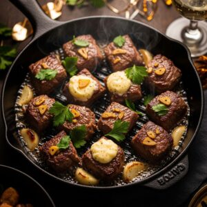 These juicy steak bites are seared in a rich garlic butter sauce and served hot in minutes — perfect as a crowd-pleasing appetizer or a quick main dish.