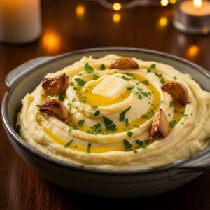 Rich, fluffy potatoes infused with butter and garlic — a comforting side dish for any NYE meal.