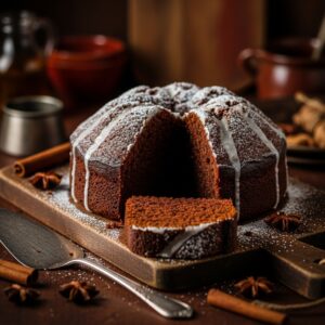 Moist, dark cake with warm ginger and molasses flavors — a cozy fall classic.