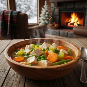A lighter but still hearty option, turkey vegetable soup uses leftover turkey, veggies, and herb-infused broth.