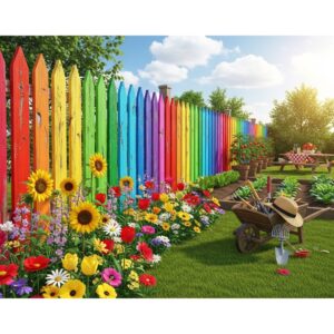 A rainbow fence works especially well in family gardens, community spaces, or homes where creativity and fun are celebrated.