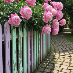 For a gentle and charming touch, pastel paints like mint green, baby blue, or soft lavender can transform your fence into a dreamy backdrop.