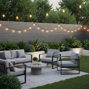 Light gray tones create a calming effect, while darker grays provide contrast and depth. Add pops of color through planters, cushions, or flowers to balance the neutral backdrop.