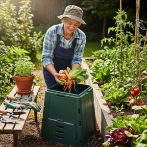 Seniors can manage a small compost bin with minimal effort, adding items like vegetable peels, leaves, and grass clippings.