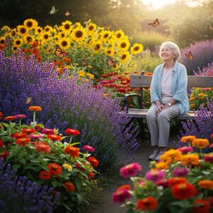 Seniors can plant nectar-rich flowers like lavender, zinnias, and sunflowers to support pollinators.