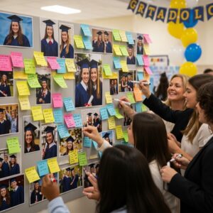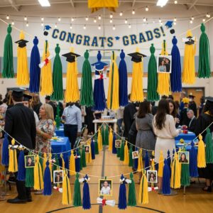 Adding personalized name cards or small inspirational quotes makes each table feel special for the graduates and guests.