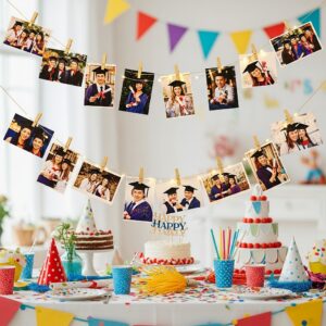 Create a garland using photos of the graduate clipped to a string with mini clothespins.