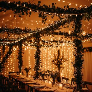 Twinkling lights create a warm, magical ambiance for indoor or outdoor parties.