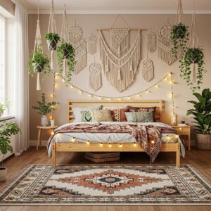 Add a macrame wall hanging or a woven rug to complete the vibe.
