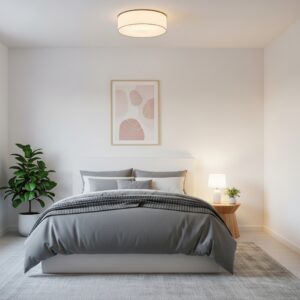 Add a low-profile bed, sleek nightstands, and minimal decor such as a single plant or framed photo.