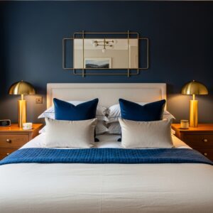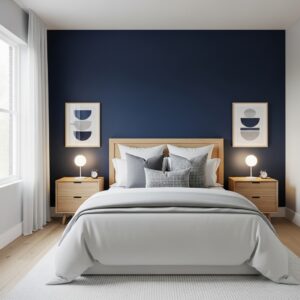 Paint one wall in a bold blue hue — like navy, cobalt, or denim — and keep the other walls neutral.