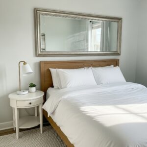 A simple wall mirror or standing mirror adds both function and design appeal.