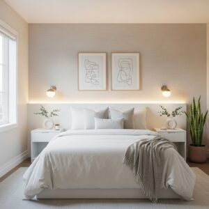 Decorate the walls with minimal, calming artwork—like landscapes, abstract prints, or line art.