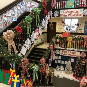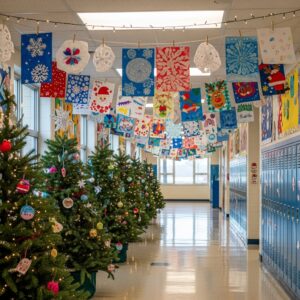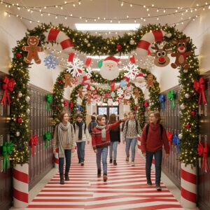 A cheerful, festive hallway can make the school feel warm, welcoming, and full of holiday spirit.