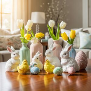 Incorporate nostalgia with vintage-style Easter figurines, like porcelain chicks or old-fashioned bunnies.