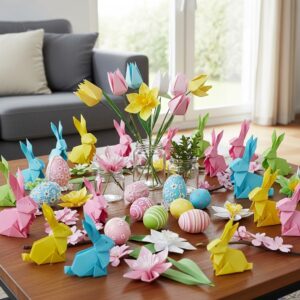 Origami bunnies, paper eggs, or folded flowers can be scattered across your table.