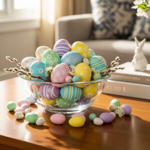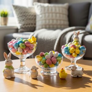 9. Glass Bowls with Candy Eggs