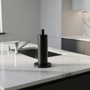Modern holders often feature minimalistic forms that complement other countertop accessories without overpowering them.