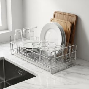 A stylish dish rack keeps your kitchen organized after washing while maintaining a modern look.