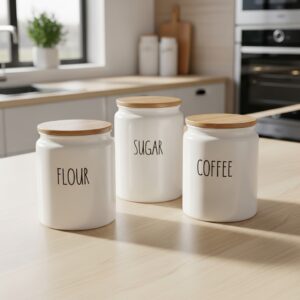 Canisters are perfect for storing staples like flour, sugar, coffee, or pasta while keeping your countertop tidy.