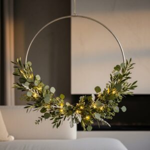 Swap traditional wreaths for sleek versions made of eucalyptus, olive branches, or metallic rings with minimal greenery.