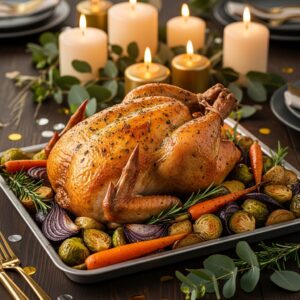A golden roast chicken with herb butter is a timeless dinner choice that feels both cozy and celebratory.