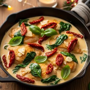 Creamy Tuscan chicken is rich, flavorful, and perfect for a festive evening.