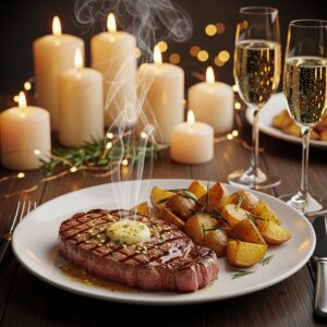 A juicy garlic butter steak instantly elevates your New Year’s Eve dinner table.