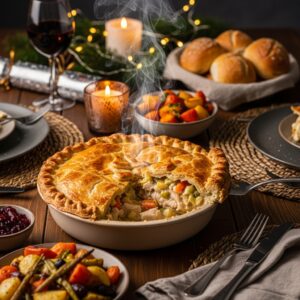 Chicken pot pie offers warmth and comfort, making it a cozy option for a winter New Year’s Eve.