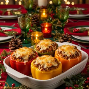 Filled with rice, ground meat, vegetables, and cheese, they make a satisfying and visually appealing dinner.