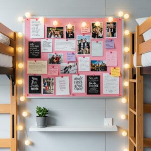 Add a pink bulletin board near the bunk bed for photos, notes, or inspirational quotes.